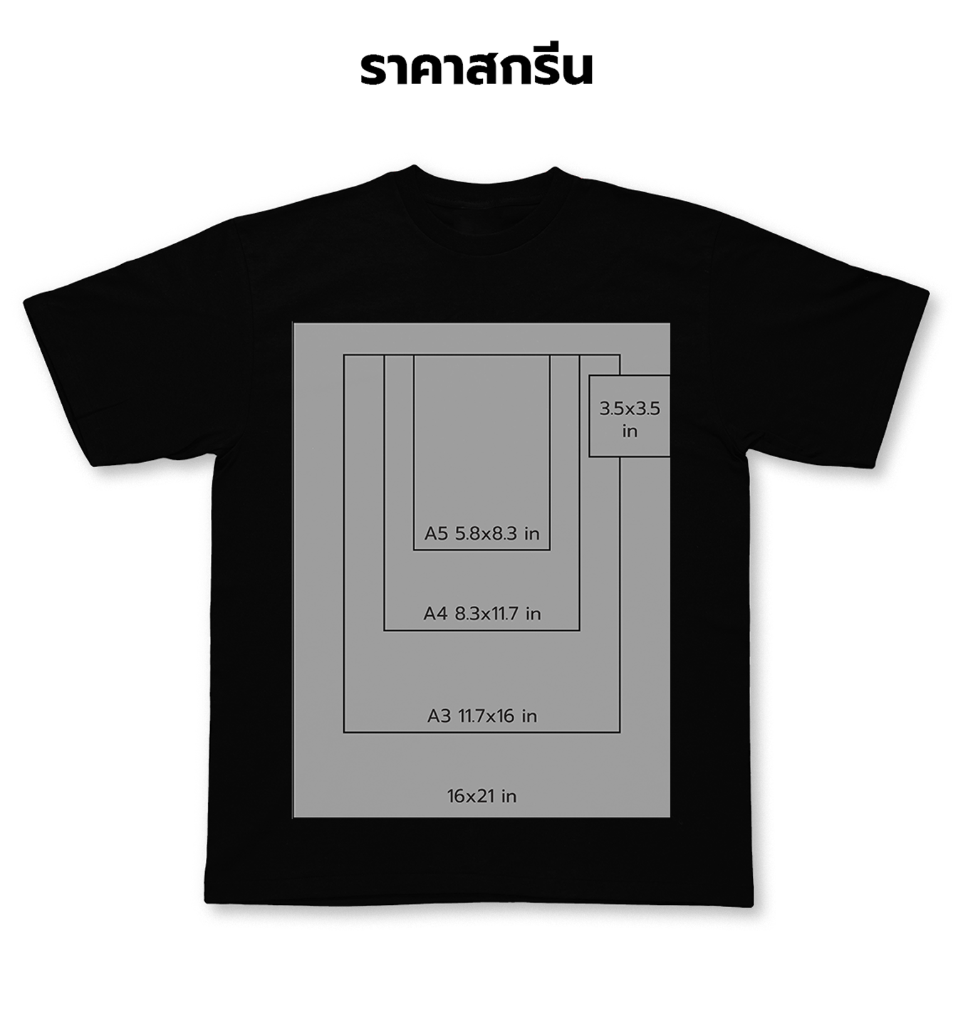 ราคาประเมินจากการใช้น้ำหมึกในการสกรีน และอิงจากในตารางทั้งสองตารางนี้